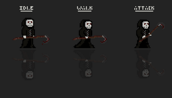 Animations: idle, walk, jump, attack, special Attack, damage, death.